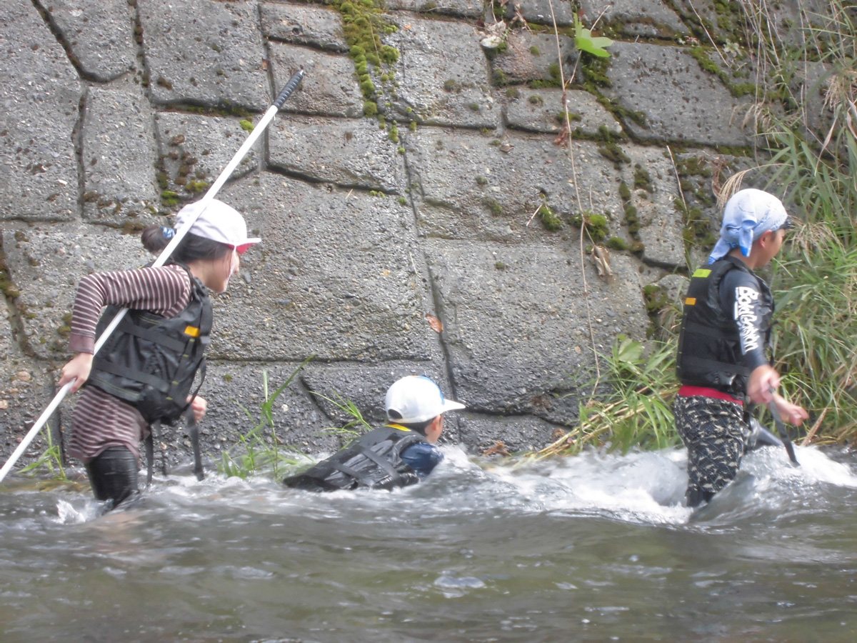 10月に、木戸口を流れる安曇川と、学校の前を流れる安曇川にでかけました。木戸口の安曇川では、水の量が減っていて、草がいっぱい生えていて、イシガメの赤ちゃんがいました。イシガメは今、数がとても減っている固有種だそうです。水辺の生き物についてさらに知りたくなりました。学校前の安曇川では、友だちが川の中で楽しそうに泳いでいたので、入りたくなりました。川原の石を砕いて化石を探している友だちもいました。